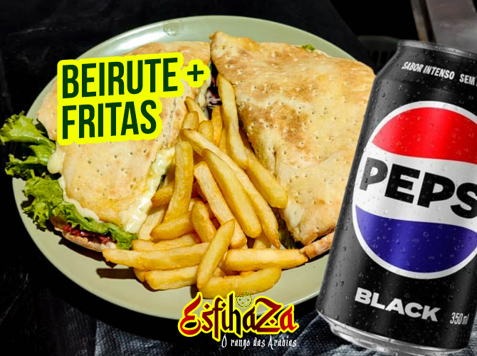 Nosso Beirute Junior é o lanche perfeito para quem busca sabor e sustância! Feito com pão sírio, condimentos (ketchup, maionese e mostarda), calabresa fatiada, cebola fatiada, mussarela, recheio suculento e ingredientes frescos. Acompanha fritas crocantes no combo — a combinação ideal para matar a fome em grande estilo.